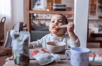 Enfin vers 8-10 mois, place au fun ! Go préparer des pancakes avec les céréales, du riz au lait, du bouillon avec des petites pâtes etc.