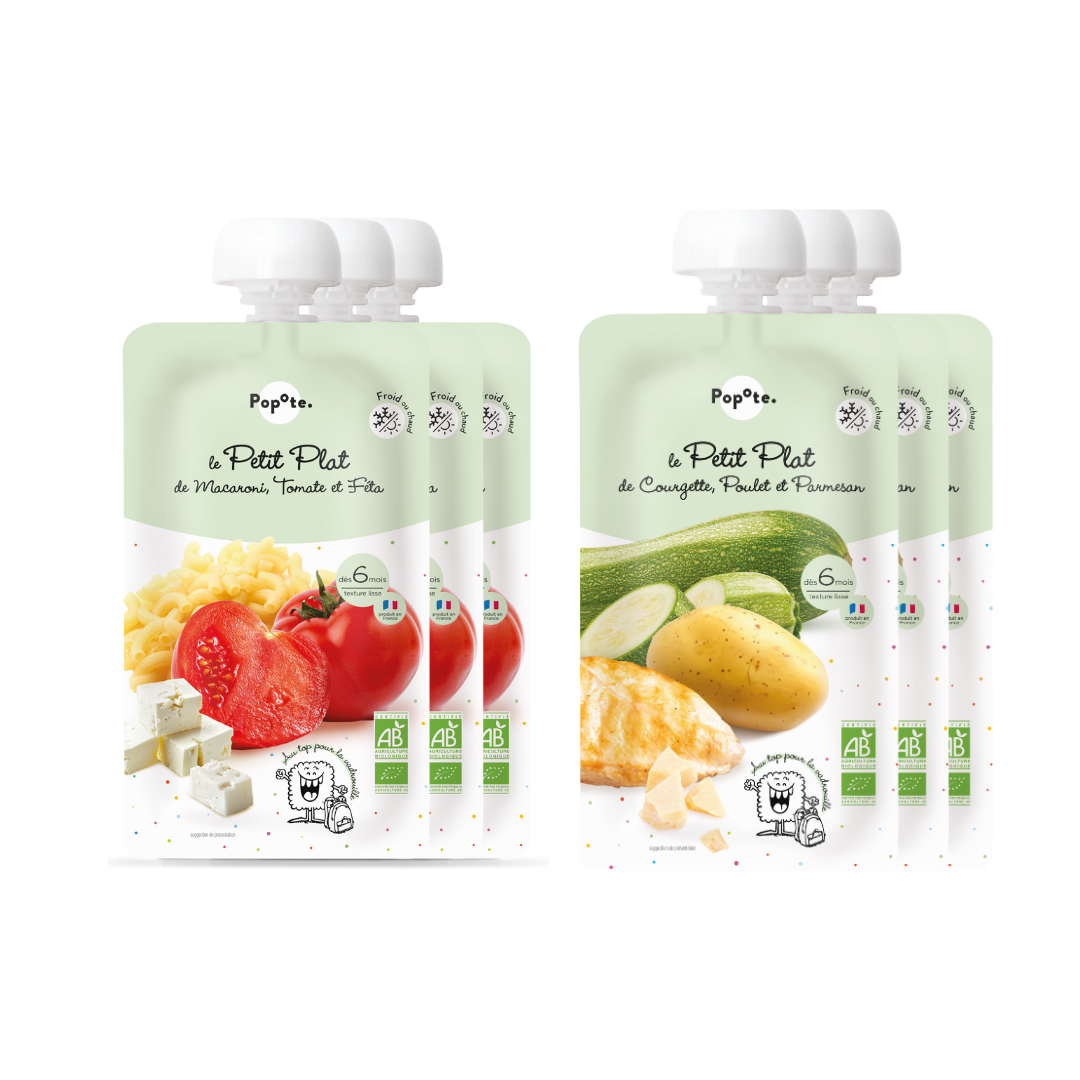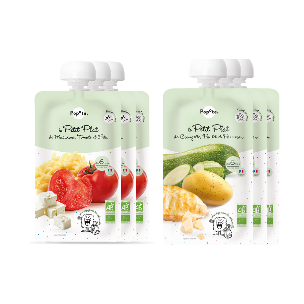 Des plats complets bio et équilibrés pour bébé dès 6 mois. Des recettes saines, gourmandes et faciles à déguster avec des légumes, des féculents, des protéines de qualité et de bonnes matières grasses. Tout ce qu’il faut pour un vrai repas complet pour Bébé.