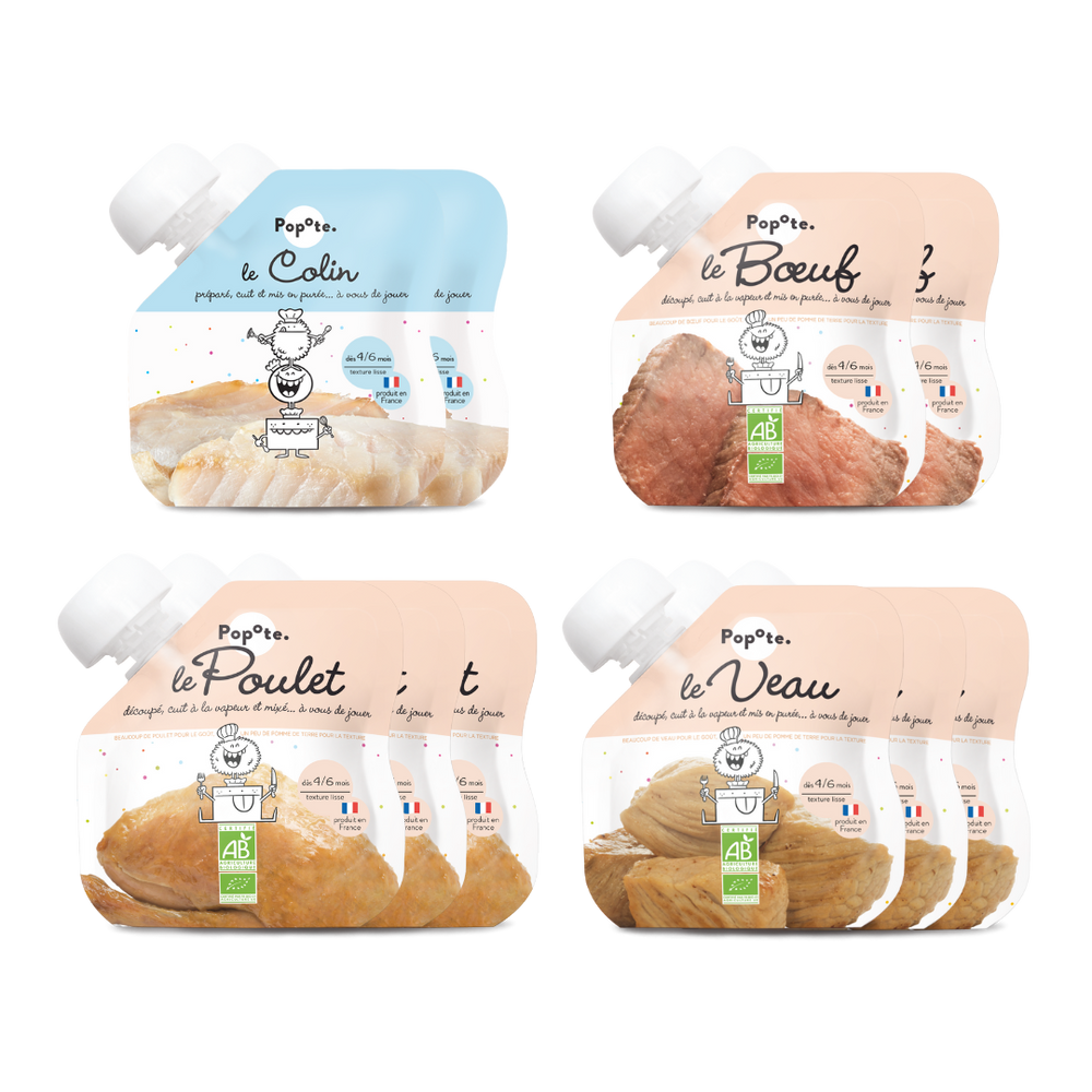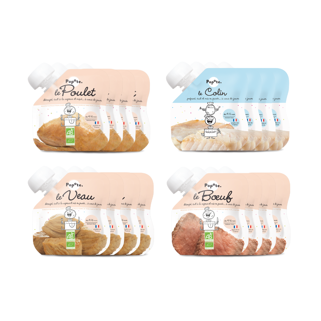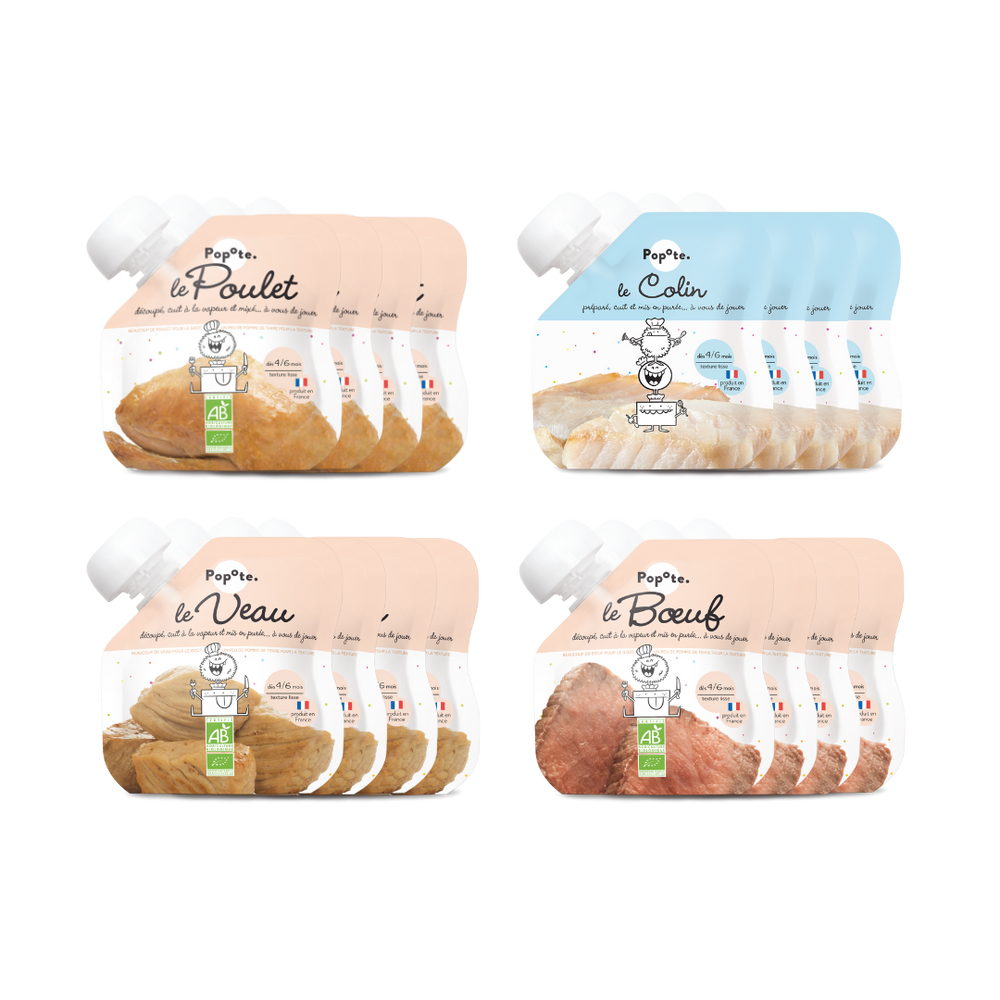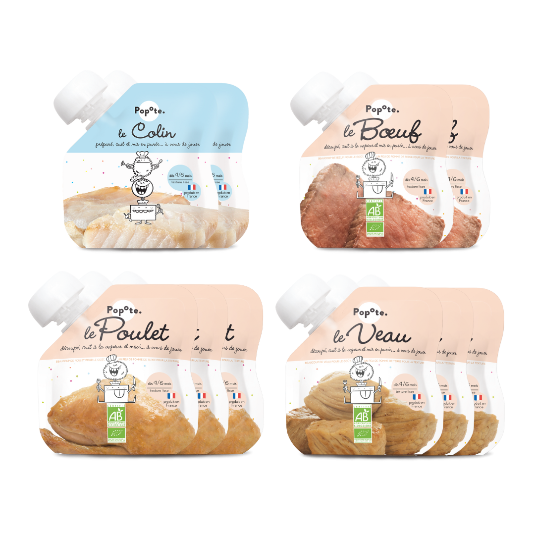 Contrairement aux petits pots pour bébés classiques, nous proposons le poisson à part des légumes afin de vous permettre de créer les menus que vous souhaitez pour les repas de bébé. La version nomade du petit pot pour bébé !