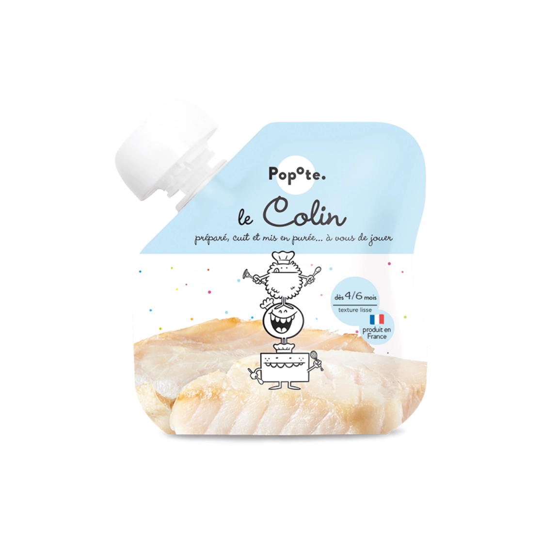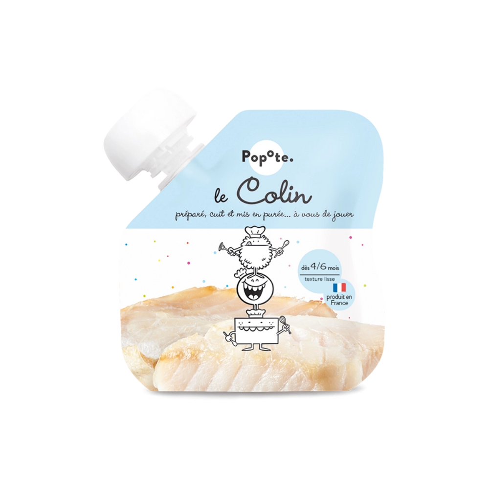 Purée de colin... Nous proposons des poissons préparés, cuits doucement pour conserver tous ses bienfaits et juste mixés avec un peu de pomme de terre. Pour faire découvrir à Bébé le vrai goût des choses.