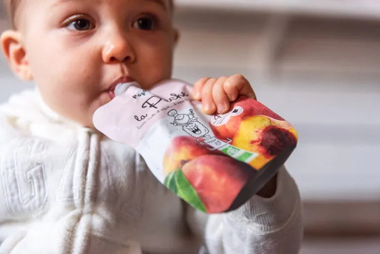 Comme pour les légumes, ça dépend de l’appétit de votre enfant. À 6 mois, Bébé peut manger 120g de compote par jour, soit une gourde entière Popote (idéale pour les jours où on part en vadrouille !). Mais ça peut être plus, ou moins, il n’y a pas réellement de chiffre qui tienne : comme on l’a dit plus haut, la quantité de fruits à proposer n’est pas limitée. Comme d’hab, vous répartissez cette quantité dans la journée comme vous préférez, au feeling, et selon les envies de Bébé.