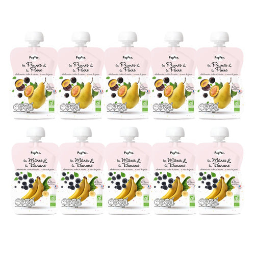 PACK DE 5 Popote Les Prunes & la Poire et 5 Popote Les Mûres & La Banane dès 4/6 mois