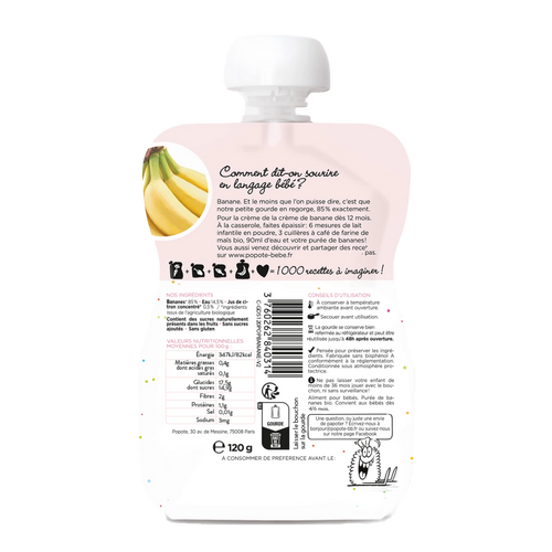 C'est une véritable aide au quotidien pour accompagner Bébé dans la diversification alimentaire dès 4/6 mois. Elle est tellement facile à utiliser, seule ou mélangée à d'autres saveurs, fleur d'oranger, vanille, lait de coco... il y a mille façons d'épater le palais de Bébé ! Amour ultime de la team Popote, on vous laisse découvrir son bon goût de banane flambée. Mais il faudra en laisser un peu à Bébé.