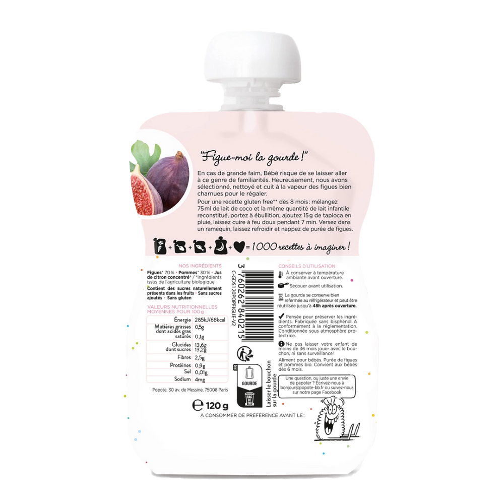 Avez-vous déjà goûté un petit pot de figue pour bébé ? Non ? Normal, il n’y en a pas ! Sauf chez Popote...Notre compote de figue 100% bio va pimper les petits plats de Bébé !