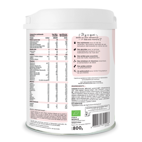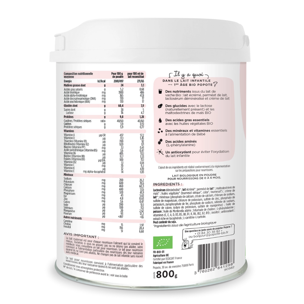 Mais chez Popote, on croit aussi qu’il y a 1000 façons d’être parent. Alors si vous ne souhaitez ou ne pouvez pas allaiter, on est aussi à vos côtés. Le lait infantile 1er âge bio Popote convient aussi en relais et/ou en complément de l’allaitement, comme tous les autres laits infantiles.