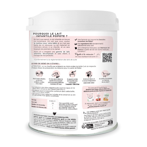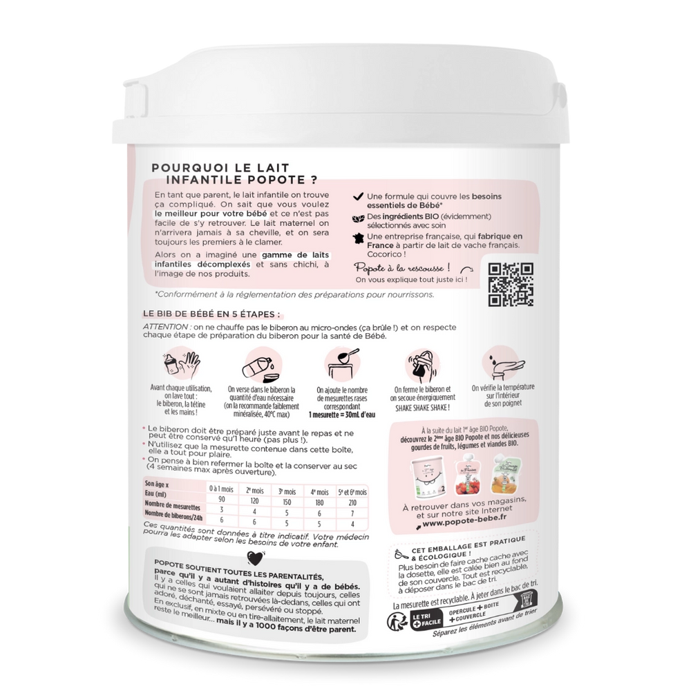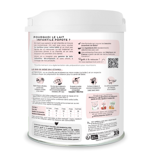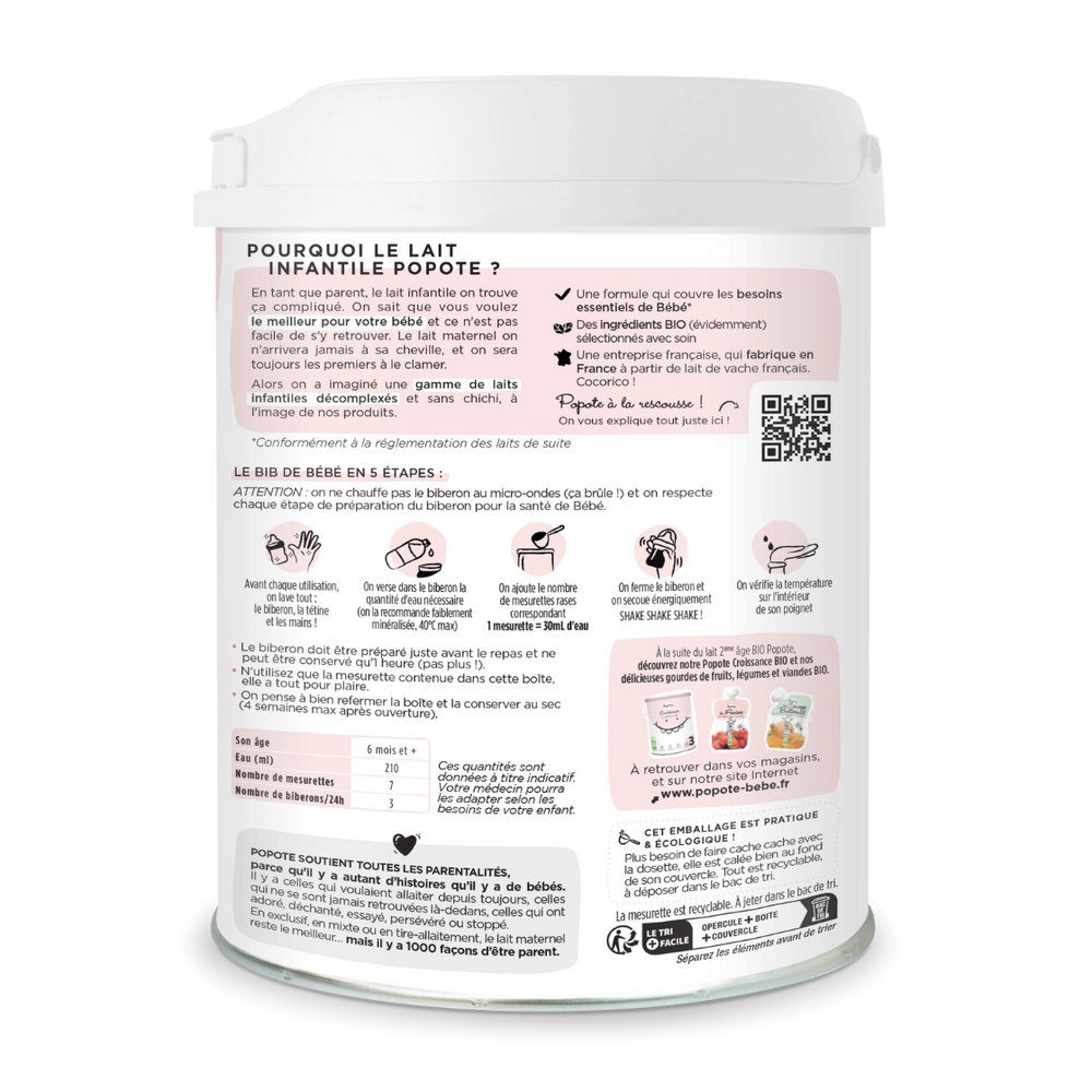 Mais chez Popote, on croit aussi qu’il y a 1000 façons d’être parent. Alors si vous ne souhaitez ou ne pouvez pas allaiter, on est aussi à vos côtés. Le lait infantile 1er âge bio Popote convient aussi en relais et/ou en complément de l’allaitement, comme tous les autres laits infantiles.