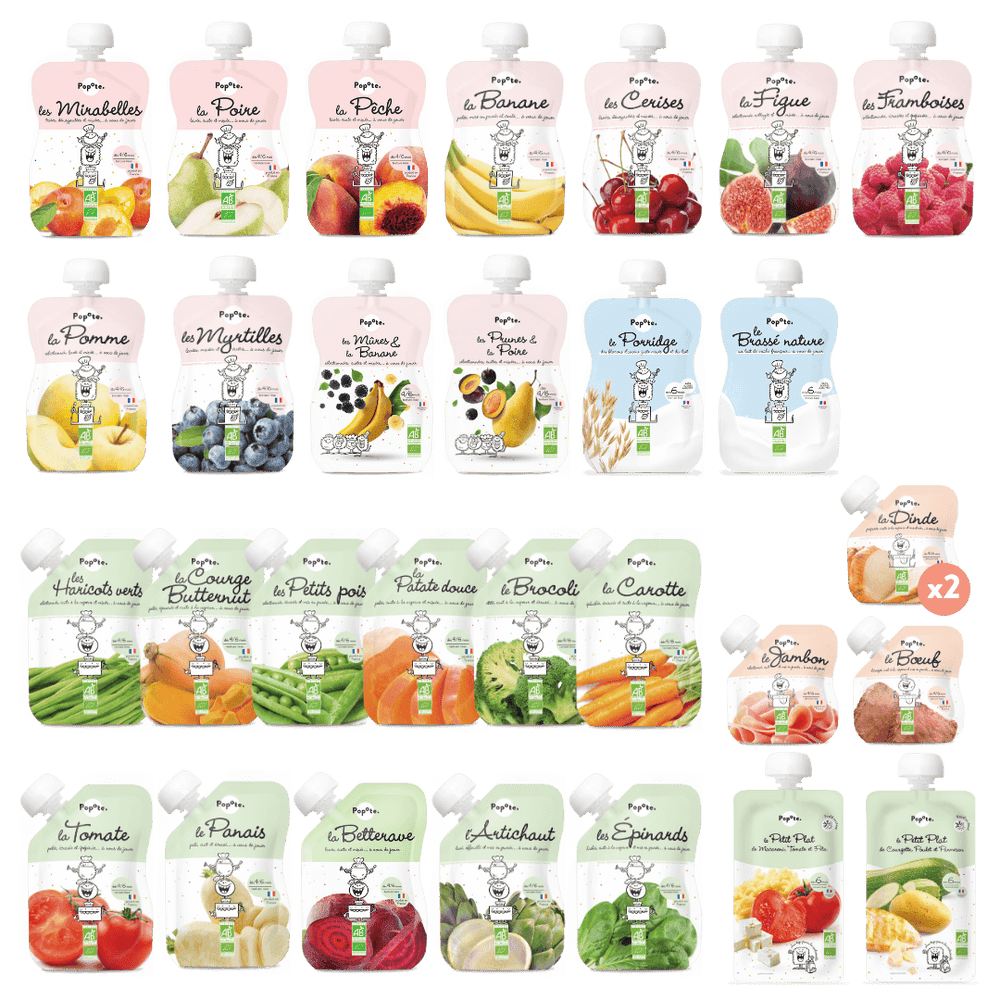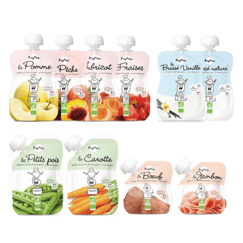 Pour le repas, faites lui découvrir nos Popote de Petits Pois, Carotte, Boeuf, Jambon.